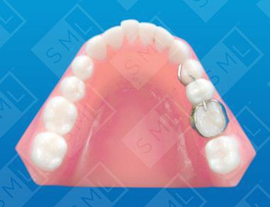 When esthetic considerations are important, an occlusal rest and a lingual “C” clasp may be used in place of a band on the visible abutment. Bonding material can then be placed over the lingual “C” clasp and occlusal rest to add stability and retention. This is also useful if the path of insertion prevents the use of two bands.