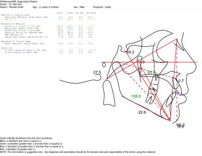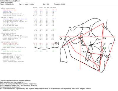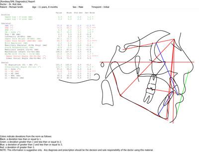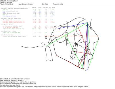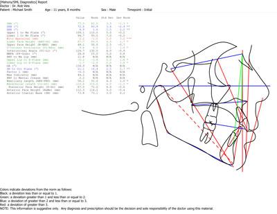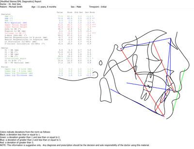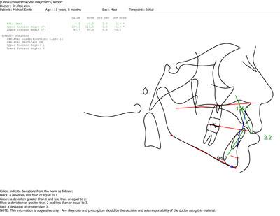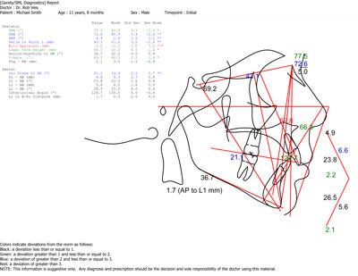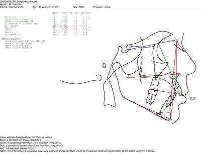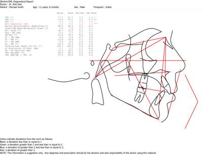 In addition, we have the ability to superimpose the cephalometric tracing directly over the cephalometric film and/or soft tissue profile photograph -- giving you the ability to relate the tracing to both the patient's skeletal and soft-tissue profile. This visual aid enhances your patient/parent consultations and provides additional information for case documentation.