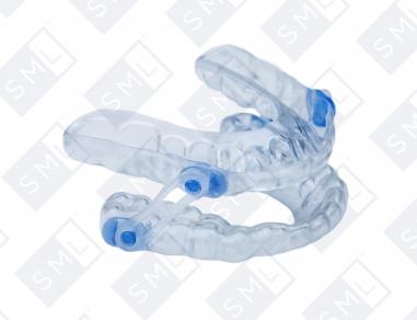 The Clear Sleep® reduces nighttime snoring and mild-to moderate Obstructive Sleep Apnea in adults by moving the mandible forward in adjustable increments and opening the airway for easier, unrestricted breathing. The appliance consists of the following features: