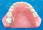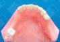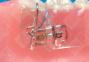 There are times when the fixed appliance approach to molar uprighting is either inappropriate or not possible. Sometimes patients do not have enough teeth to use as an anchor or the stabilizing teeth are periodontally involved. A removable design allows you to use the soft tissue, teeth, and the appliance to form an anchor unit. A temporary partial can be designed which incorporates a spring or an expansion screw to accomplish the desired tooth movement. Retention and anchorage are accomplished by using two to three clasps and by having excellent tissue adaptation. This design is especially useful on adult patients with 12-year molars tipped mesially. Although not shown in this example, a labial bow is often used to prevent flaring of the anterior teeth. Note - When using removable appliances that have an expansion screw, have your patient activate the appliance one turn per week. This is equivalent to 1mm of movement per month.