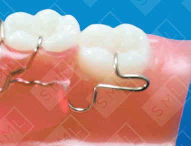 The Multi-Spring Molar Uprighter demonstrates the use of two very useful uprighting springs: the mushroom and the distal recurve. Easy to adjust, they can effectively upright tipped molars, usually with only two or three adjustments. The rest, placed on the molar with the distal recurved spring, aids in prohibiting super-eruption when an opposing tooth is missing. Note: When using “C” clasps, consider the use of a composite ledge for superior retention.