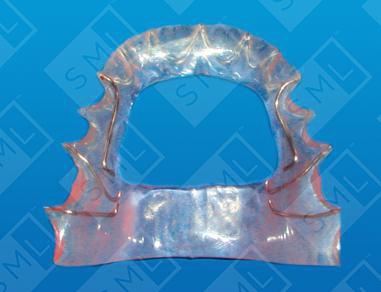 By designing a final retainer with an open palate, the patient can wear the appliance 24-hours a day without being concerned that his or her speech will be affected. This is accomplished by placing a posterior palatal strap and lingual acrylic band that supports the anterior teeth. Kevlar fiber is usually added to the acrylic to provide added strength. This open palate design keeps the rugae area open to improve tongue position during speech.