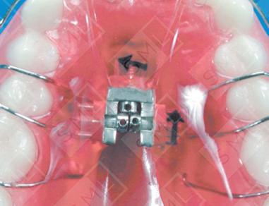 This unique device features three independently expanding sections in one housing for transverse as well as sagittal development. Each section can be independently activated. When an equal amount of lateral development is desired, turn the two lateral sections at the same time. If a differential amount of lateral development is needed, by turning one of the lateral sections you can get unilateral movement. This is an excellent screw when the size of the palate is large enough to handle its considerable bulk. It is not suited for narrow palates or younger patients.