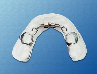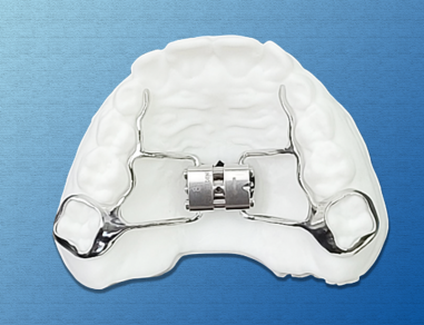 The  Accu3D Metal Printed Comfort Expander (RPE) is utilized to widen the patient’s arch either in pre-treatment or during treatment.