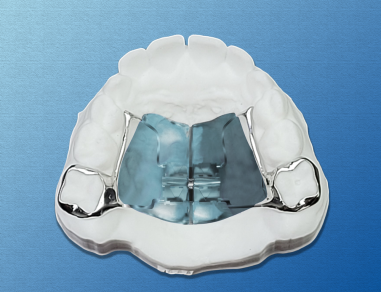 The Accu3D Metal Printed HAAS (Acrylic) appliance includes an acrylic plate positioned within the palate vault. The plate features an expansion screw that allows for adjustment. Dr. Haas theorized that enhanced palatal coverage minimizes tipping and facilitates more substantial bodily movement due to the added support on the palate.