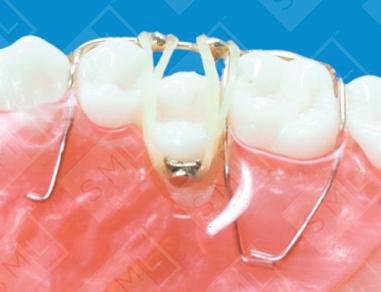 Another method to move a bicuspid buccally, other than a finger spring, mini-screw, or micro-screw, is the use of a “sling-shot” elastic. By bonding a button onto the lingual surface of the bicuspid, an elastic can be carried from hooks on the labial bow to this button to move the bicuspid buccally. This method is sometimes preferred to a finger spring or a micro-screw, especially when timely office visits are difficult for your patient.