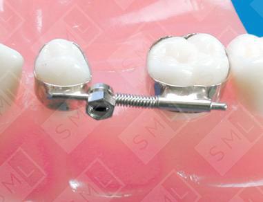 The typical anchorage system used when you wish to unilaterally move a bicuspid mesially, while preventing reciprocal movement of the other teeth. This appliance uses nickel titanium coil spring and an adjustable Gurin Lock. Note: Activating the Gurin lock is easily accomplished with a special box wrench (available from SML).