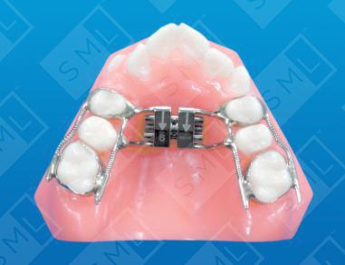 The CD Multi-Action Hyrax constitutes another solution for accomplishing distal bodily movement of the first molars while expanding the arch laterally. It incorporates the use of NiTi coil spring, compacted onto buccal and lingual bars that run from the bicuspids to the molars. The bars are soldered to the bicuspid bands and run through tubes which are soldered to the molar bands. As the coil expresses itself, the molars slide distally along the bars in a bodily fashion. Note: Once molar position is established (and the arch is expanded), a holding arch is usually placed. The bicuspids and cuspids are brought back in the arch form -- one at a time -- using fixed mechanics.