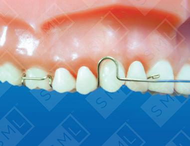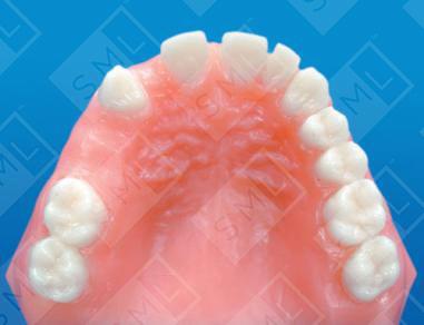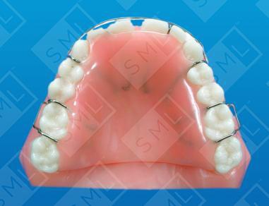 This upper active partial sample was designed to treat a patient that has a peg lateral on the left side and a congenitally missing lateral on the right side. First and second bicuspids are also missing on the right side. By using this simple appliance, space can be created for the replacement of the lateral on the right with either a bridge or an implant, and for the placement of a veneer on the left lateral. This tooth movement is accomplished with the use of simple mesial and distal kicker springs. With an appliance like this, we are able to accomplish this essential minor orthodontic movement while still maintaining a functional occlusion.