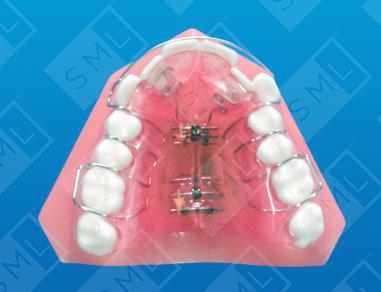 Although arch development is more commonly used in the treatment of developing children, arch expansion appliances can be successfully used to treat adults. They are particularly effective when the posterior teeth are lingually tipped in conjunction with the arch being narrow. A typical custom appliance, consisting of lingually tipped posteriors and crowded anteriors, is shown here. When using this appliance with an adult dentition, lateral development can be greatly enhanced by the addition of a second expansion screw. This ensures uniform anterior-posterior pressure and affords more stability as the screws reach the limits of their threads. Note: A small amount of differential expansion can be accomplished by adjusting these screws at a different rate. Care must be taken, however, to avoid cracking the appliance.