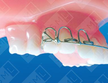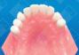 This appliance demonstrates the versatility of treatment partials. In this scenario, all of the anteriors are flared due to a loss of posterior support and periodontal disease. Specifically, both cuspids and the left lateral need to be moved lingually prior to gathering the rest of the anteriors and placing an intra-coronal splint. To accomplish this tooth movement, T-springs are used to move the cuspids and lateral lingually. Then, to finish gathering the anteriors, an elastic is placed across the labial surface of the anteriors stretching from hooks on the labial bow at the first bicuspids. All of this tooth movement takes place using a temporary treatment partial. Once all of the desired tooth movement is complete, an intra-coronal splint will be placed so that the splinting will not interfere with the design of the permanent partial.